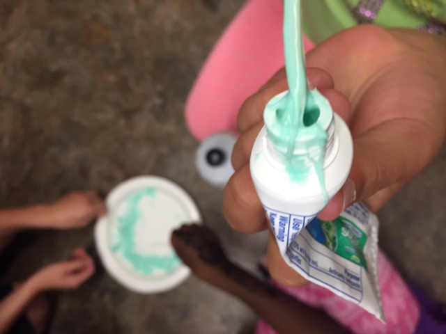 *My students took turns squeezing out the toothpaste onto the plate until it was as empty as they could get it.