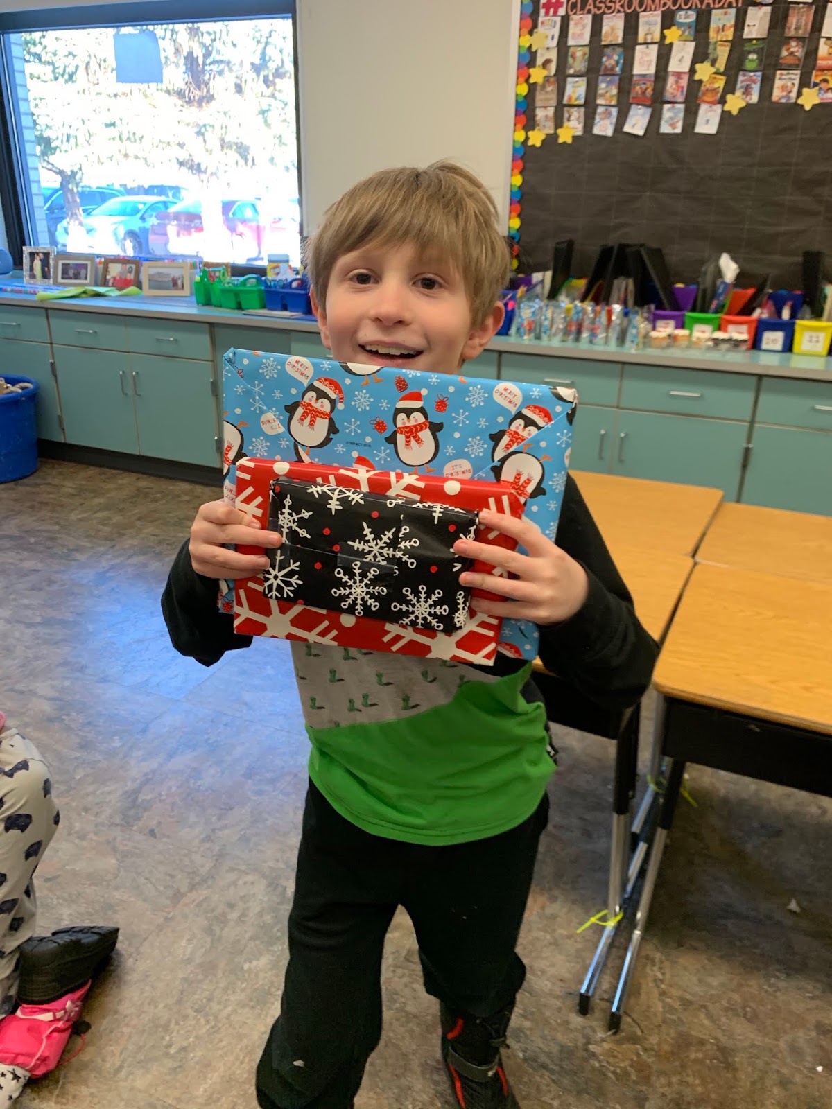 *The gifts were passed out and then we did several rounds of "trading" their gifts. When they couldn't stand it any longer, I let them OPEN their gifts.